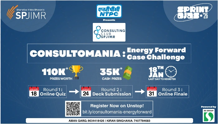 This year’s edition features a sustainability-focused consulting case, curated in collaboration with the SPJIMR Consulting Club and NTPC, reflecting emerging industry challenges and long-term strategic considerations. Consultomania offers a rare opportunity to experience the expectations, intensity, and mindset required in consulting engagements, while competing with top teams from B-schools across the country.