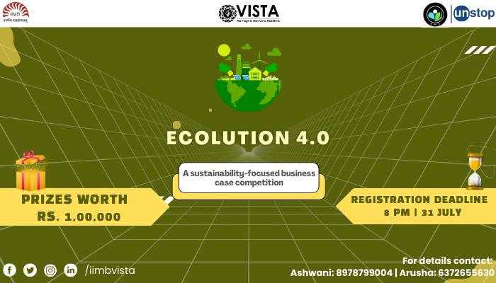 IIM Bangalore’s International Business Summit Vista 2024, in association with ENS, the Environment and Sustainability Club of IIMB, presents Ecolution 4.0. Climate change is one of the most pressing issues of the decade, and mind-bending problems require groundbreaking solutions. Through this competition, we want to kindle the sustainable spirit in you to come up with creative and well-thought-out solutions to the problems presented in the case.
