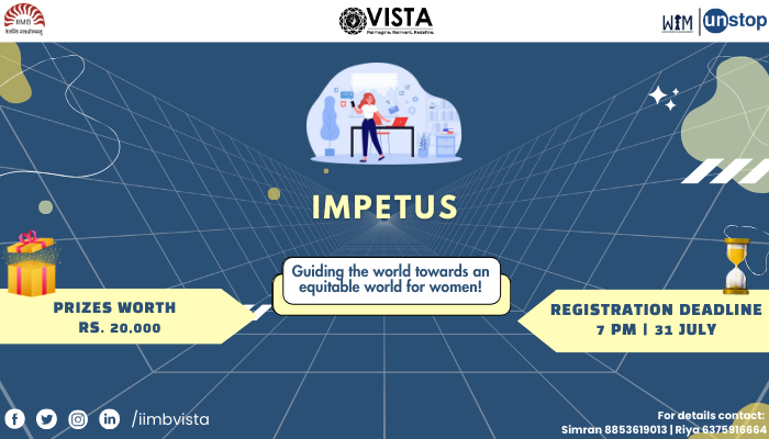 Join us at Impetus, a groundbreaking case competition where we tackle the critical challenges women face in climbing the leadership ladder across diverse industries. Whether you're passionate about driving change or simply eager to share your insights, this event is your platform to brainstorm, debate, and innovate. Open to all genders, Impetus invites visionaries and thought leaders to explore and design actionable strategies to break barriers and foster equality in leadership. Be part of the movement to empower the next generation of women leaders!