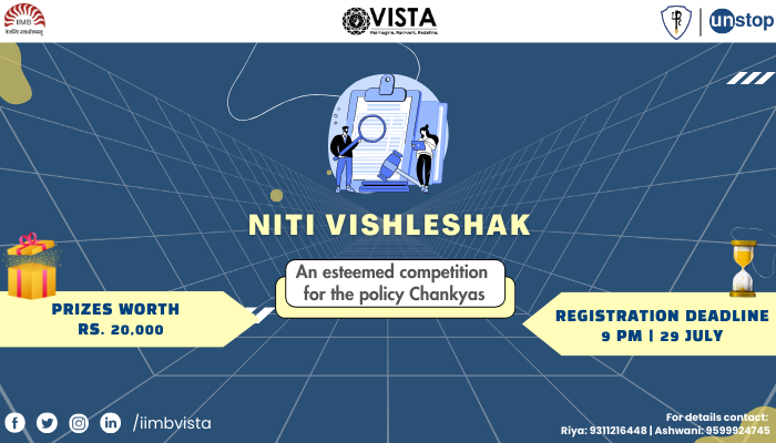 The International Business Summit Vista 2024, organized by IIM Bangalore in collaboration with the Public Policy Club, proudly presents “Niti Vishleshak” - an esteemed competition for policy enthusiasts.
