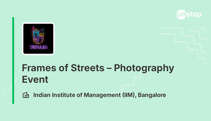 - Frames of Streets is an online photography event that invites participants to capture the essence of the IIM Bangalore campus during Unmaad Fest. From scenic campus streets and architectural beauty to high-energy performances, candid emotions, vibrant crowds, and silent in-between moments, this event celebrates storytelling through still frames.