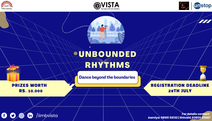 Join us for an extraordinary event of artistic expression with mesmerizing dance routines that capture the essence of our visionary future as IIM Bangalore's International Business Summit, Vista 2024 in association with Taal and Unstop(formerly Dare2Compete), presents- Unbounded Rhythms: Dance Beyond the Boundaries.