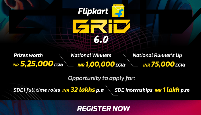GRiD is Flipkart’s Flagship Engineering Campus Challenge which provides you with the opportunity to apply your technical knowledge and skills, to compete and complete key challenges.
