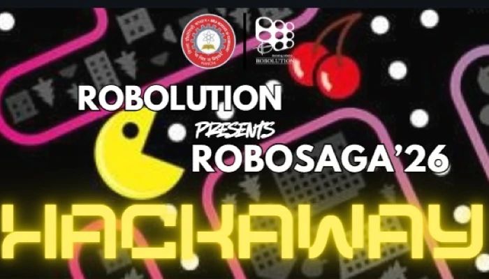 - Overview: HackAway is an overnight hackathon designed to test creativity, teamwork, and technical expertise. As a flagship event of RoboSaga’26, it challenges participants to think fast, build smarter, and develop impactful solutions in a competitive yet exciting environment. The hackathon promotes innovation through real-world problem solving and hands-on implementation using hardware + software integration.
